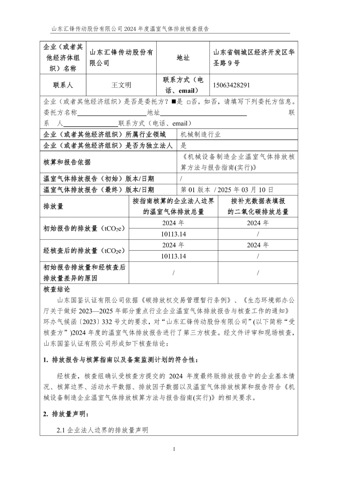 山東匯鋒傳動(dòng)股份有限公司-2024 年度-溫室氣體排放核查報(bào)告 2025/05/30 10:31 上一篇 : 溫嶺精鍛通過(guò)第三批國(guó)家級(jí)專(zhuān)精特新“小巨人”企業(yè)復(fù)審! 下一篇 : 匯鋒-碳足跡報(bào)告 相關(guān)產(chǎn)品 457系列近齒形從動(dòng)螺旋錐齒輪 457系列近齒形從動(dòng)螺旋錐齒輪 Contact Now 440系列839主從動(dòng)螺旋錐齒輪 440系列839主從動(dòng)螺旋錐齒輪 Contact Now 445系列1543主從動(dòng)螺旋錐齒輪 445系列1543主從動(dòng)螺旋錐齒輪 Contact Now 相關(guān)新聞 山東匯鋒傳動(dòng)股份有限公司 2024年度社會(huì)責(zé)任報(bào)告 2025-05-30 匯鋒-碳足跡報(bào)告 2025-05-30 山東匯鋒傳動(dòng)股份有限公司-2024 年度-溫室氣體排放核查報(bào)告 2025-05-30